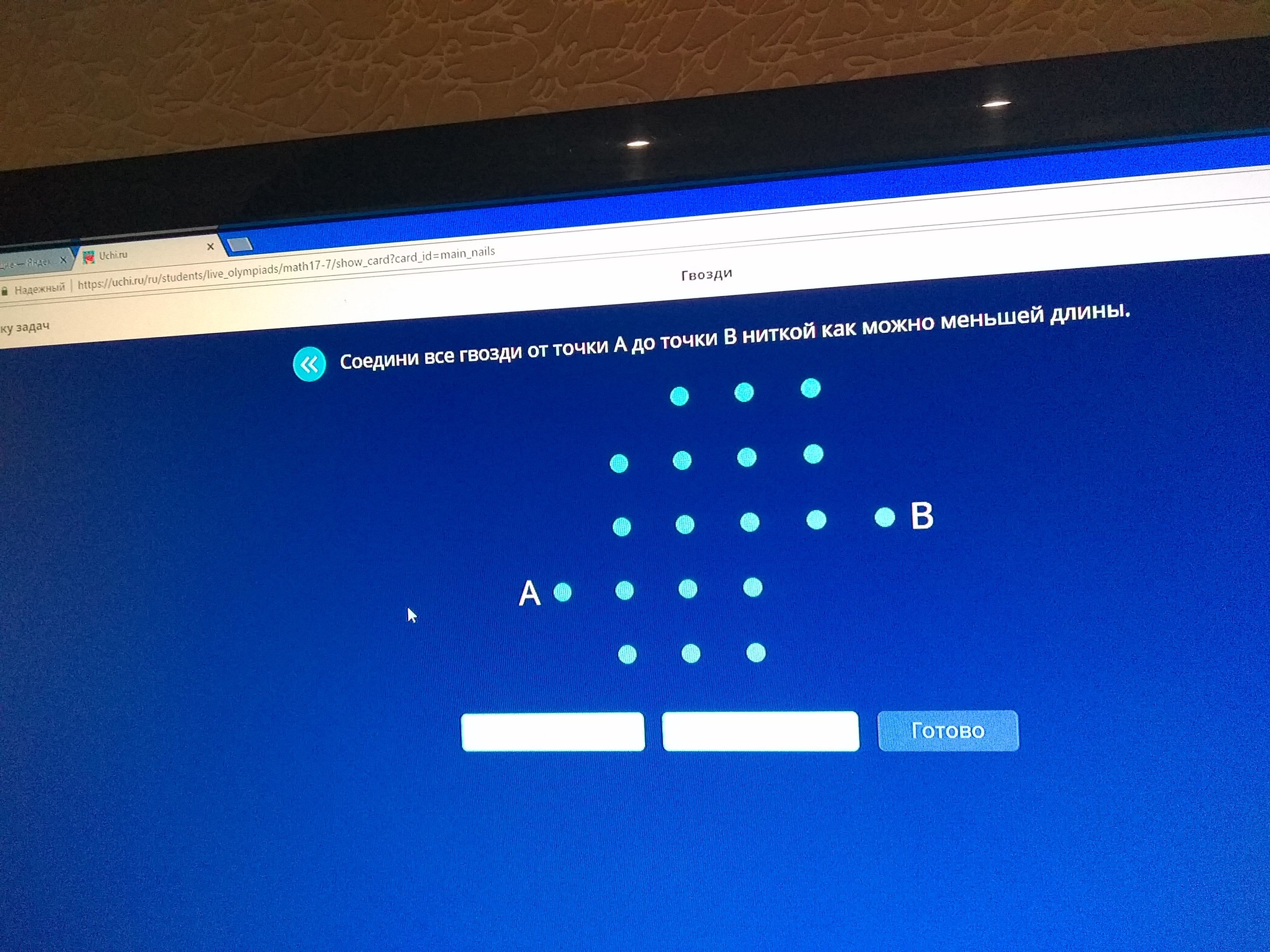 Соедините все гвозди от точки А до точки б ниткой как можно меньше длины