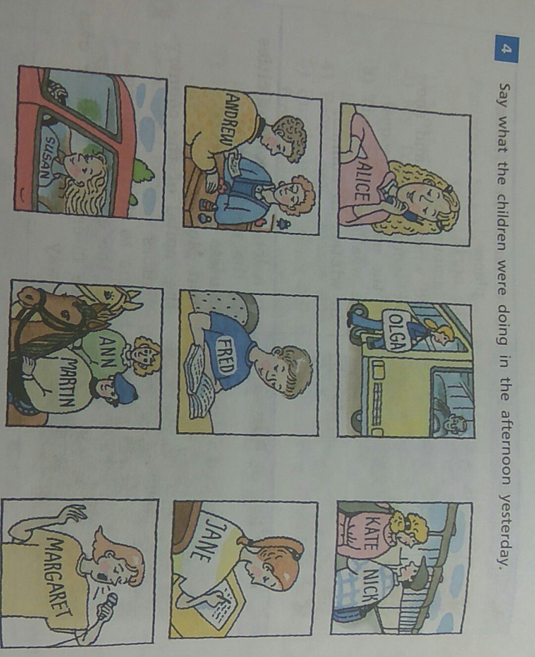 Olga was going into the bus. Kate and Nick were staying on the bridge.