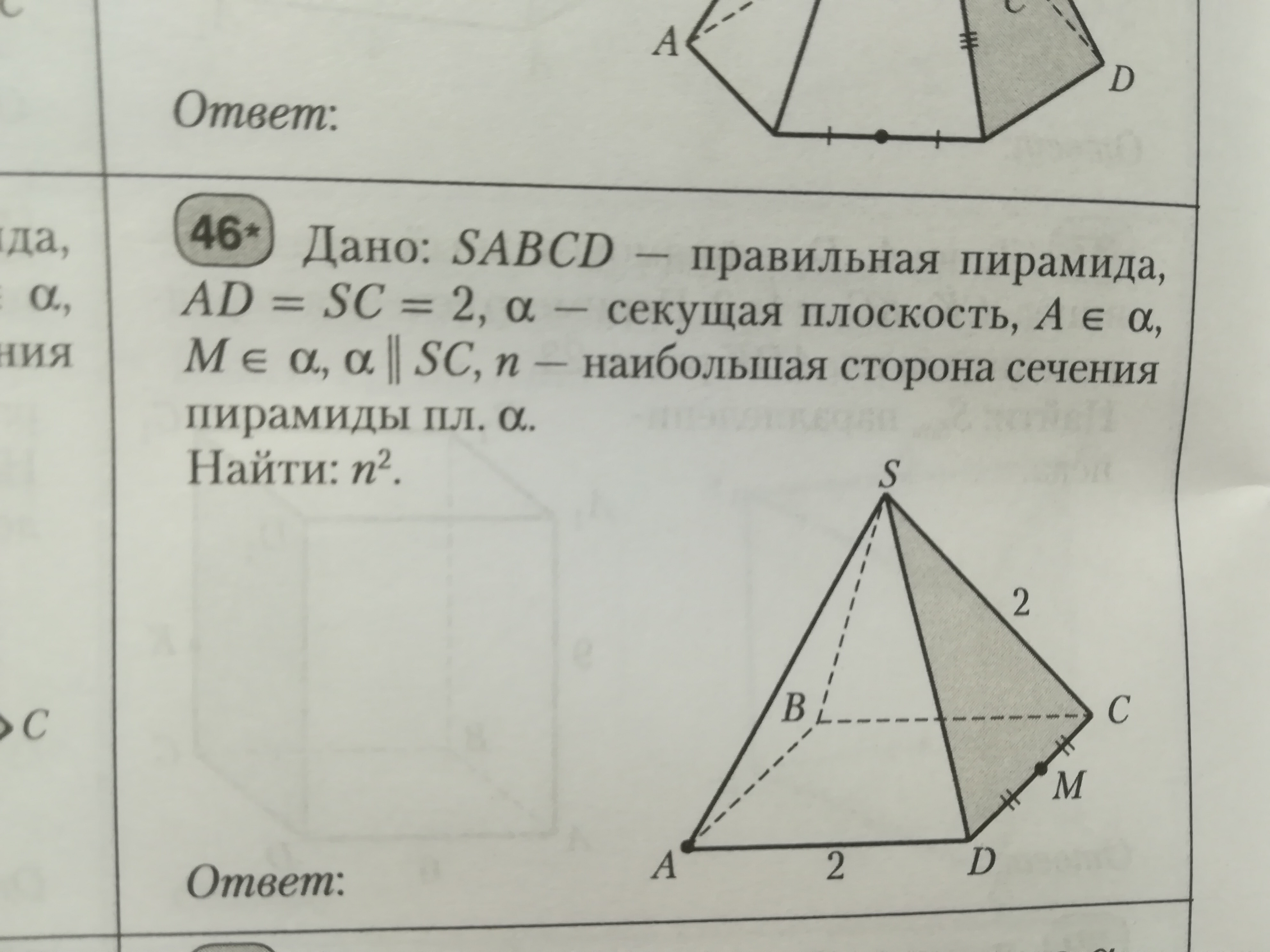 пусть Е точка пересечения плоскости альфа и SD, т.к. плоскость || SC, то SC || MЕ => MЕ - средняя линия ADC и равна половине SC