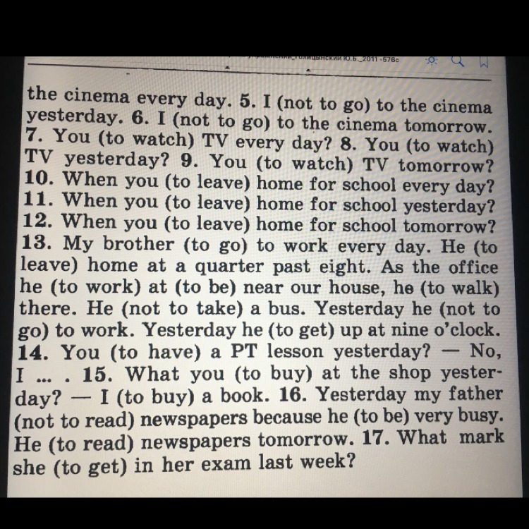 My brother goes to work every day.He leaves home at a quarter past eight.As the office he works at is near our house,he walks there.He doesn't take a bus.Yesterday he didn't go to work.Yesterday he got up at nine o' clock