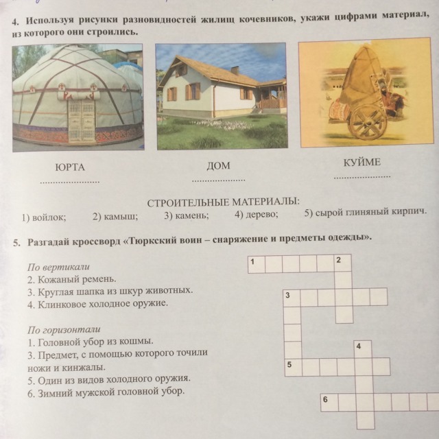 4 задание только из каких материалов строилась юрта, дом и куйме