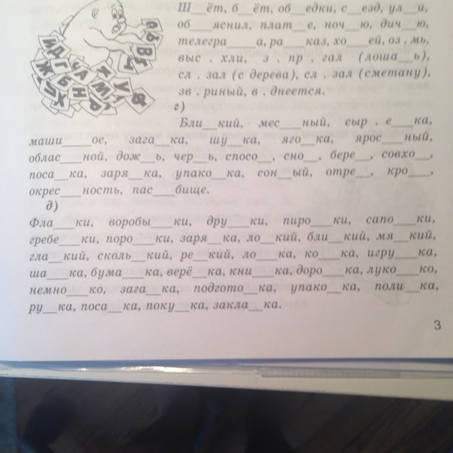 флаЖки (флажок), воробыШки (воробышек), друЖки (дружок), пироЖки (пирожок), сапоЖки (сапожек), гребеШки (гребешок), пороЖки (порожек), заряДка (зарядочка), лоВкий (ловок), блиЗкий (близок), мяГкий (мягок), глаДкий (гладок), скольЗский (скользит), реЗкий (резок), лоДка или лоЖка (лодочка, ложечка), коШка (кошечка), игруШка (игрушечка), шаПка (шапочка), бумаЖка (бумажечка), верёВка (верёвочка), книЖка (книжечка), дороЖка (дорожечка), лукоШко (лукошечко), немноЖко (немножечко), загаДка (загадочка, загадать), подготоВка (готовить), упакоВка (упаковочка, паковать), полиВка (поливать), руБка (рубить), посаДка (садить), покуПка (купить), заклаДка (закладочка).