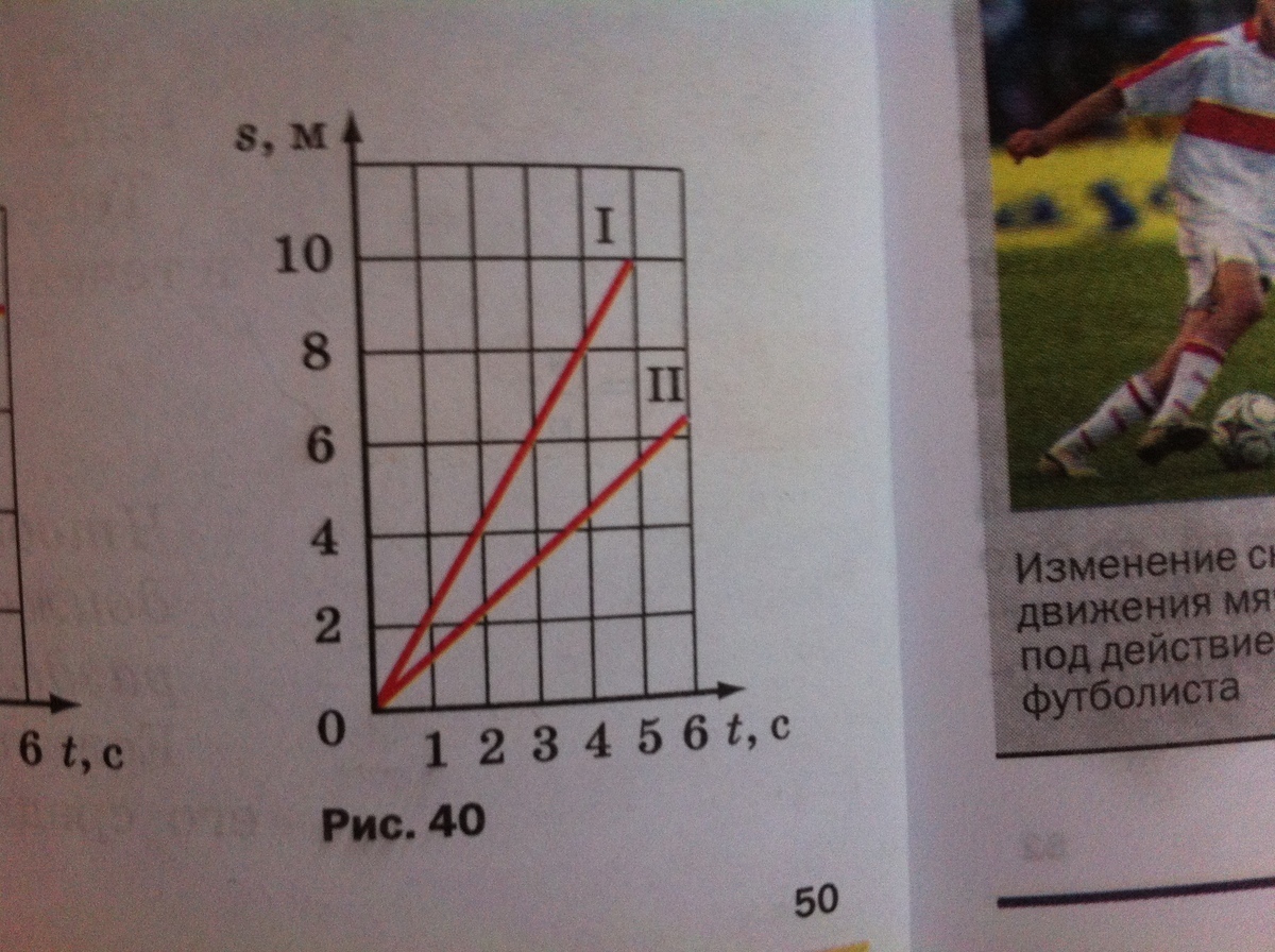 По графикам зависимости путей отпо графикам зависимости путей от времени(рис, 40) двух тел движущихся равномерно, определите скорость этих тел. Скорость какого тела больше? 15Б
