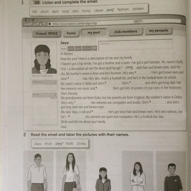 2 , strong ,3 , blond , 4 a schoolgirl , 5, small, 6 , ballet 7, beautiful 8, tall , 9, slim 10,kind