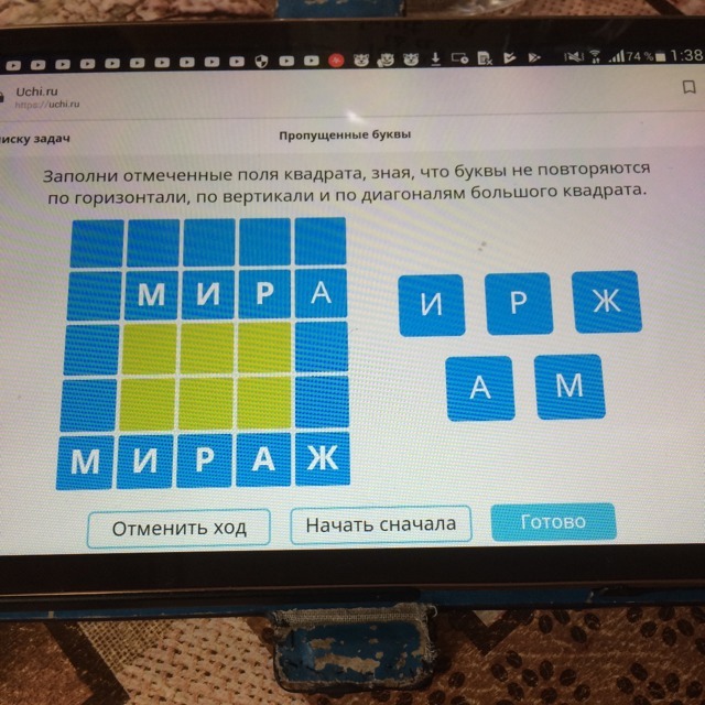 заполни отмеченные поля выдра ты знаешь что буквы не повторяются по горизонтали по вертикали и по диагонали большого квадрата.слово мираж