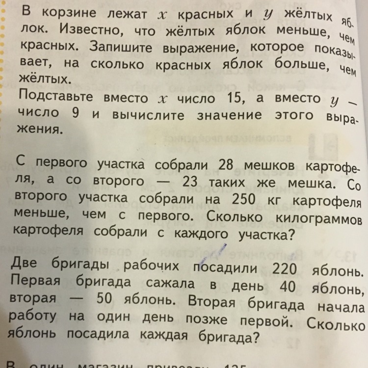 Сначала найдём разницу между количеством мешков, собранных с 1 - ого участка и количеством мешков, собранных со 2 - ого участка.
