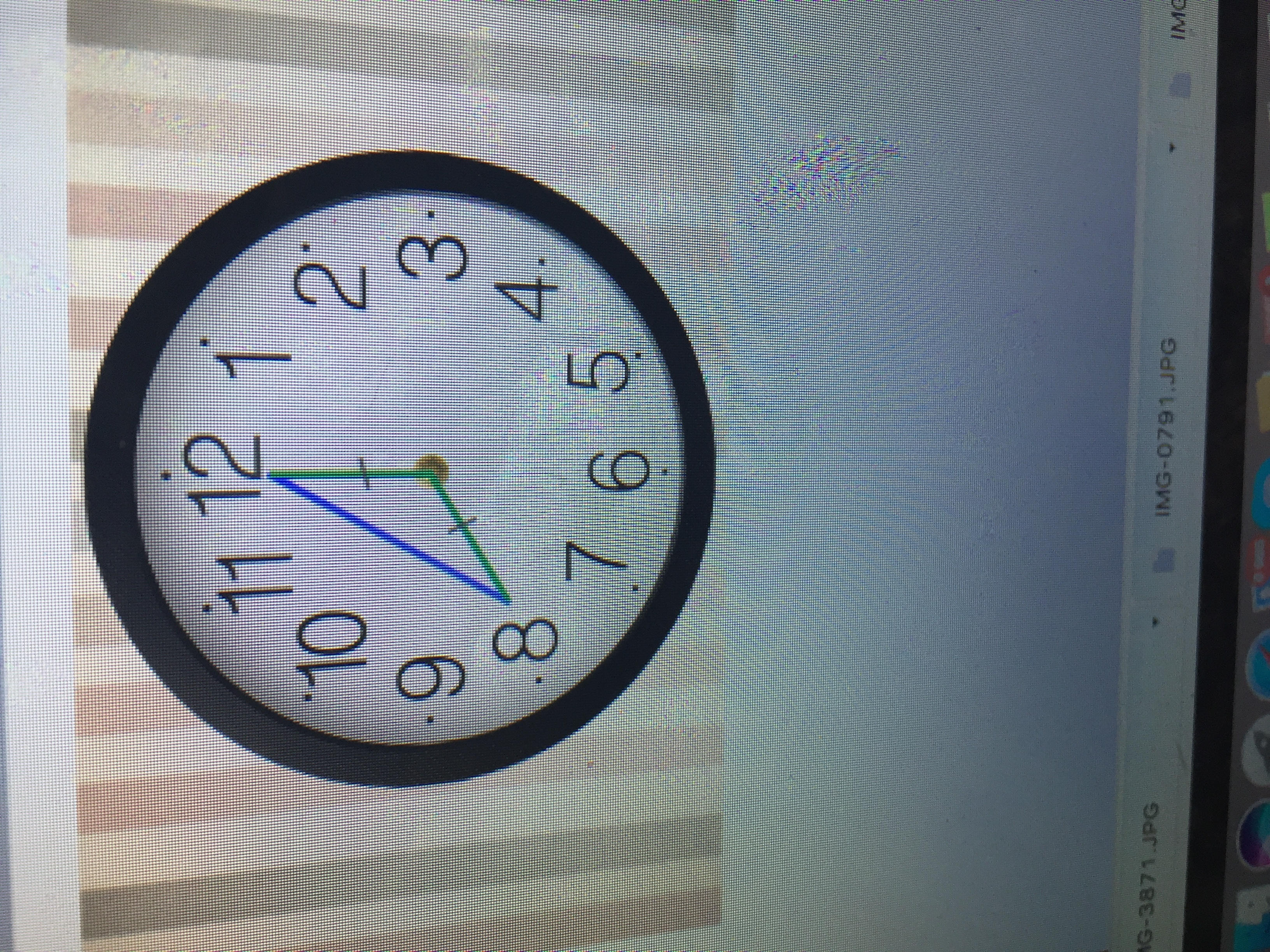 половина циферблата состовляет 180 градусов, значит между каждым часом 30 градусов, 180-30*2=120, а треугольник равнобедренный, значит оставшиеся углы (180-120)/2=30