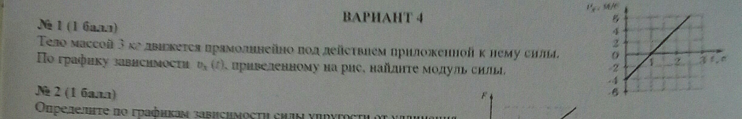 тело массой 3 кг движется прямолинейно под действием приложенной к нему силы. По графику зависимости Vx(t), приведенному на рис. найдите модуль силы