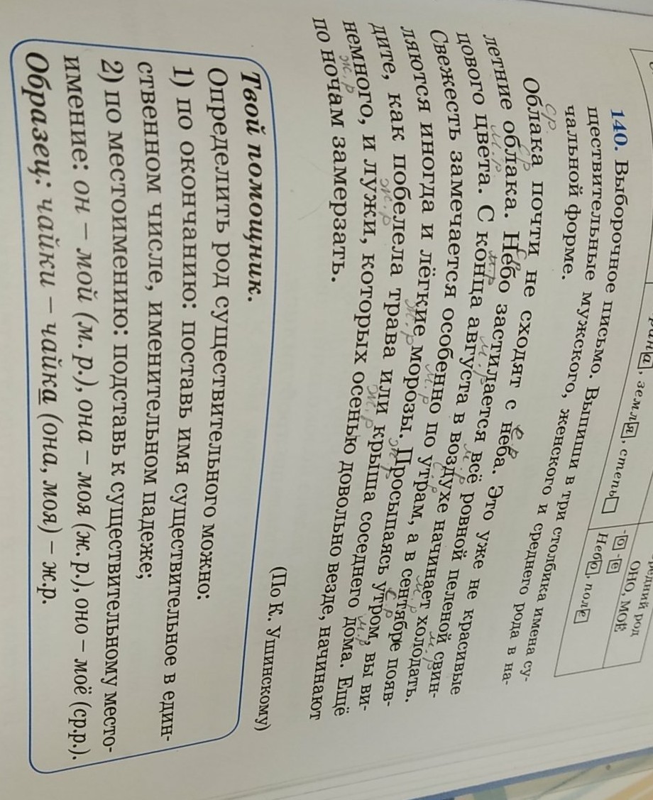 Средний род: облако, небо, утро.