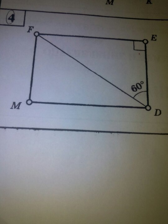 Соответственно так как в прямоугольнике противоположные углы равны, можем сделать вывод, что угол E=углу M, a угол F=углу D, получается углы E,M=60