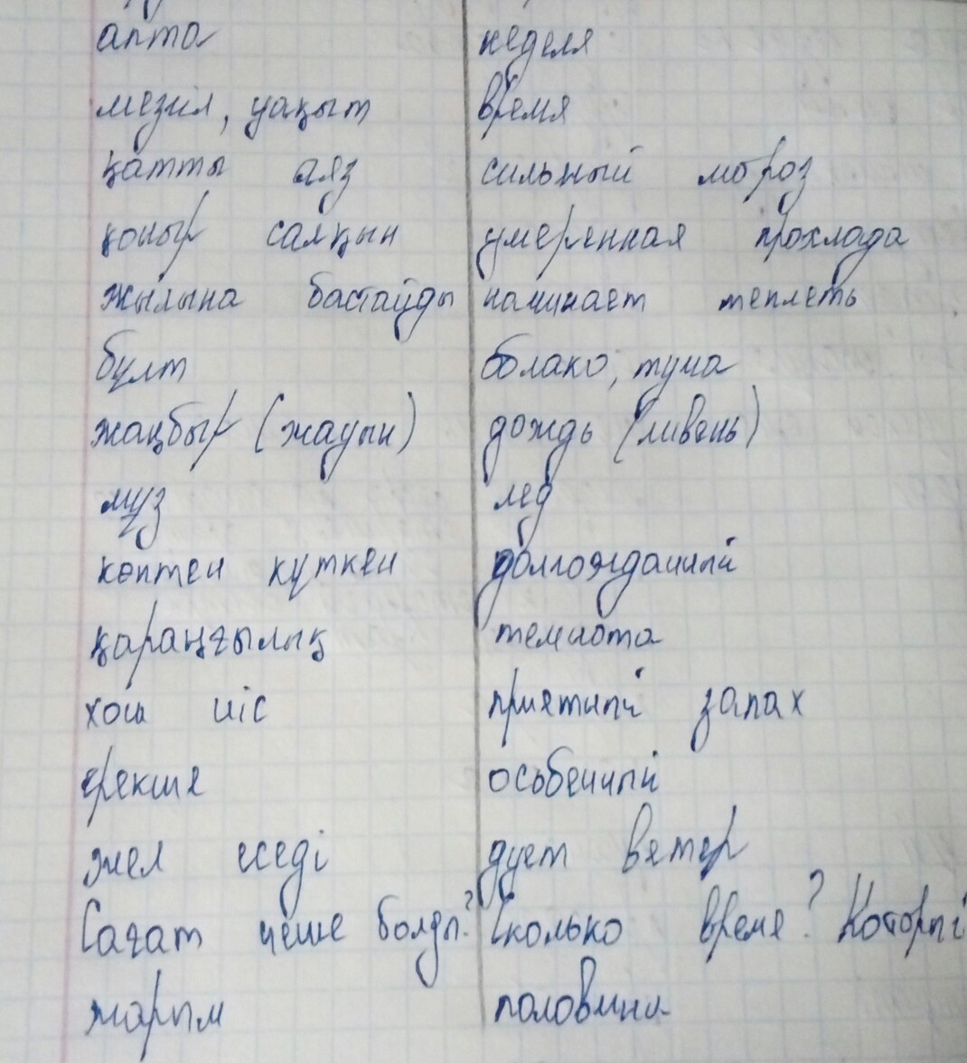Нужно всего лишь выучить слова. И всё. Слова на тему время, времена года, природные явления.