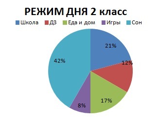 Просто для интереса построим круговую диаграмму режима дня.