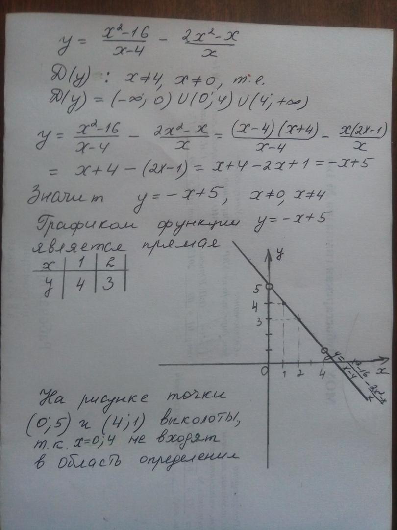 Помогите пожалуйста: Постройте график функции y=x^2-16/x-4 - 2x^2-x/x