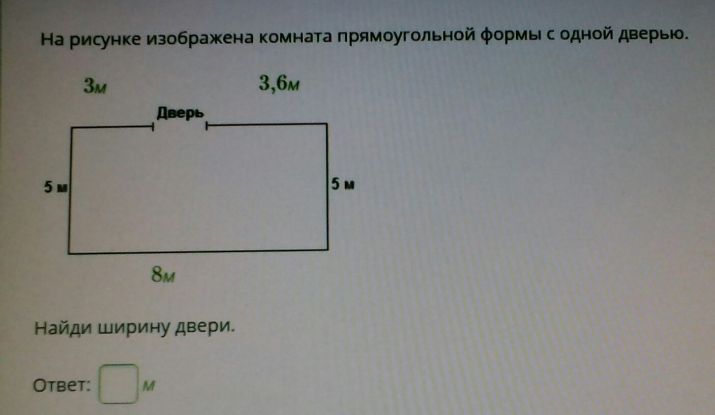 3+3,6=6,6 8-6,6=1,4 ширина двери