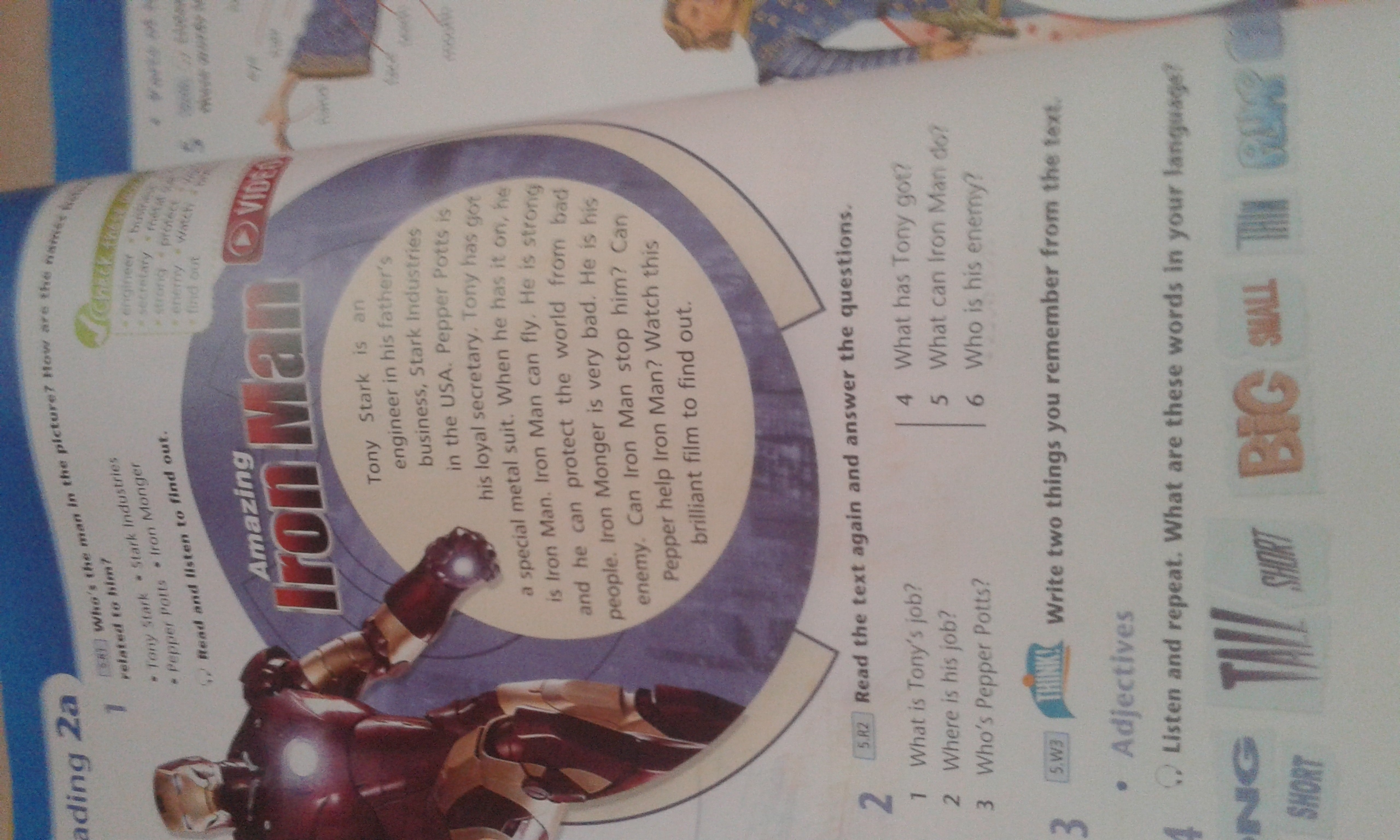 1) engineer 2) USA 3) loyal Secretary 4) special metal suit