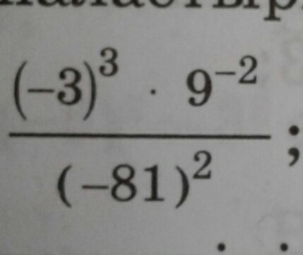 ............= frac{(-3)^{3} }{(-3^{4})^{2}*(3^{2})^{2}}=  frac{(-3)^{3}}{(-3)^{8}*3^{4}}= frac{1}{(-3)^{5}*3^{4}}=- frac{1}{3^{8}}