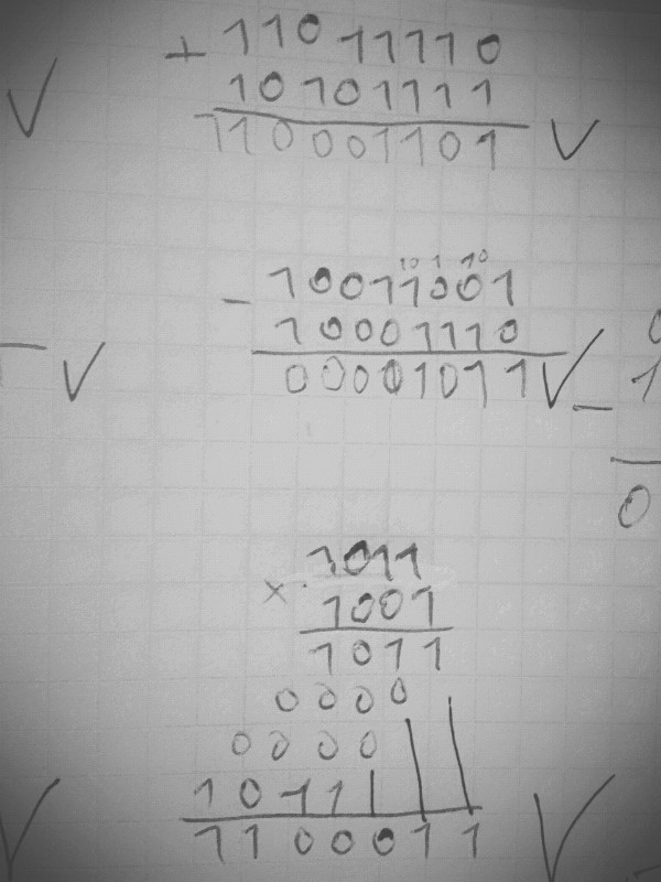Сложение, вычитание и умножение двоичных чисел. Проверьте, пожалуйста, правильно ли решены эти примеры?