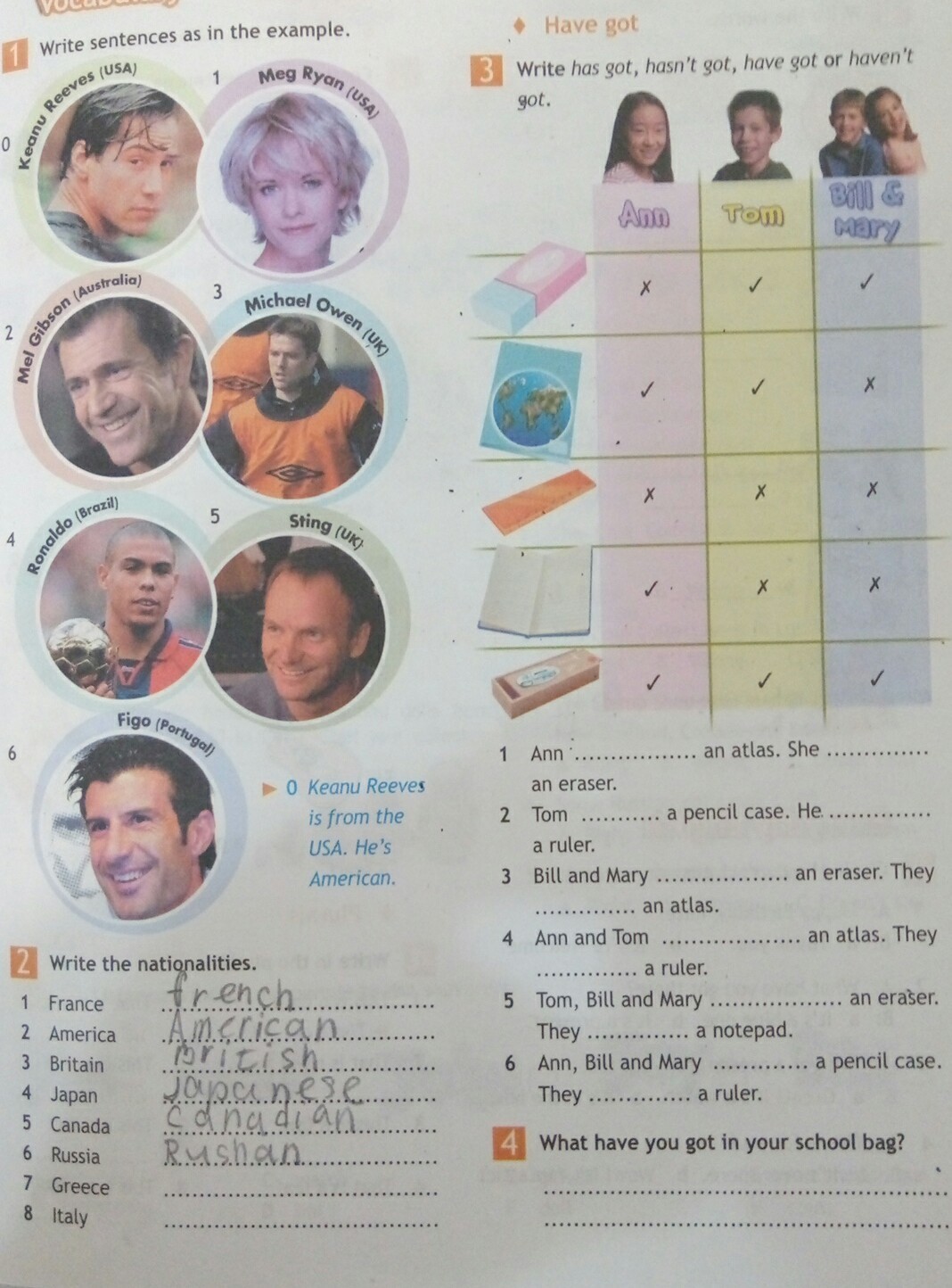 3 Bill and Mary have got a eraser. They haven't got an atlas.