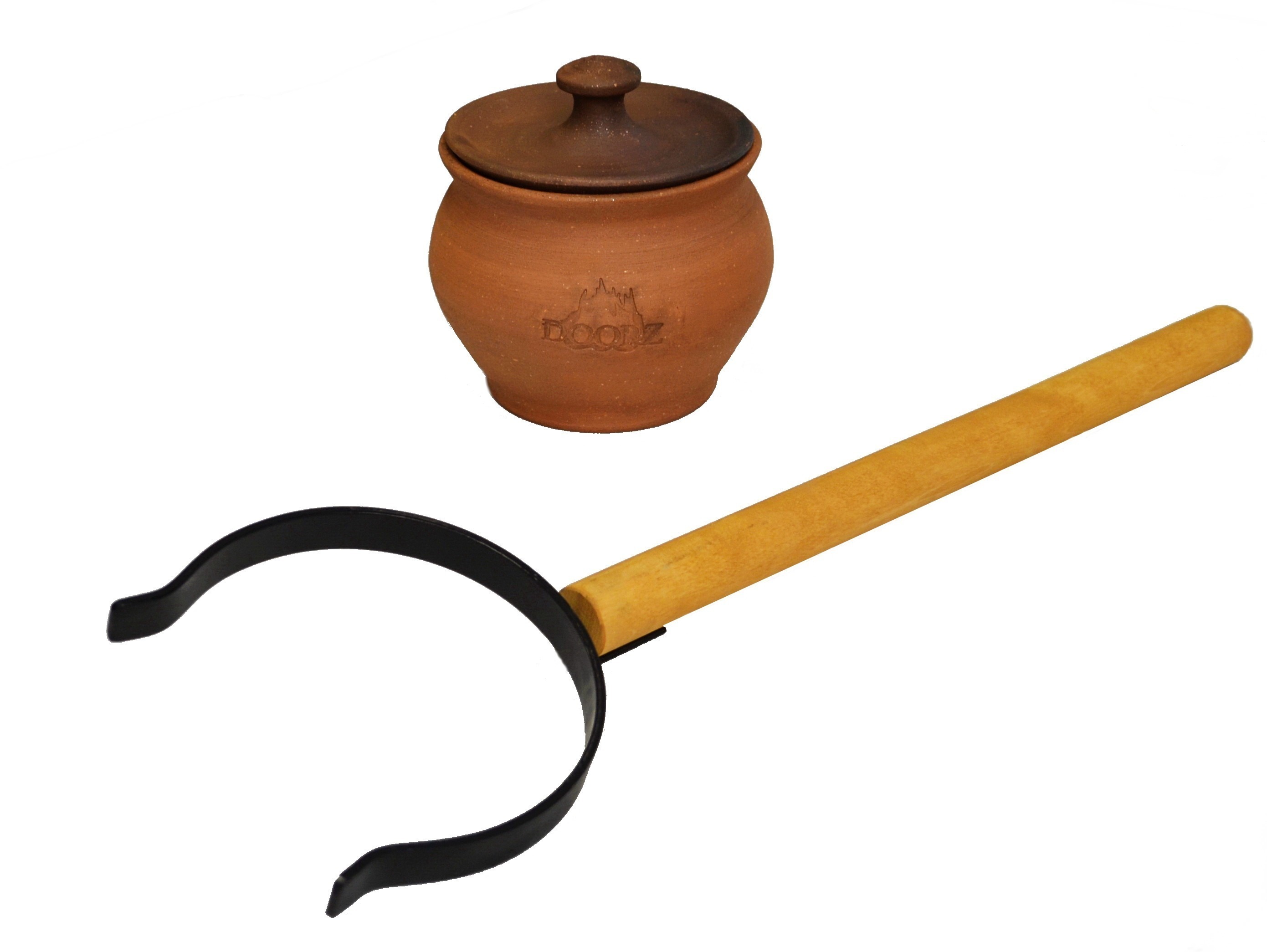 Ухват-приспособление для того,что бы вытаскивать горшки из печи,с металлическим наконечником и деревянной рукоятью.