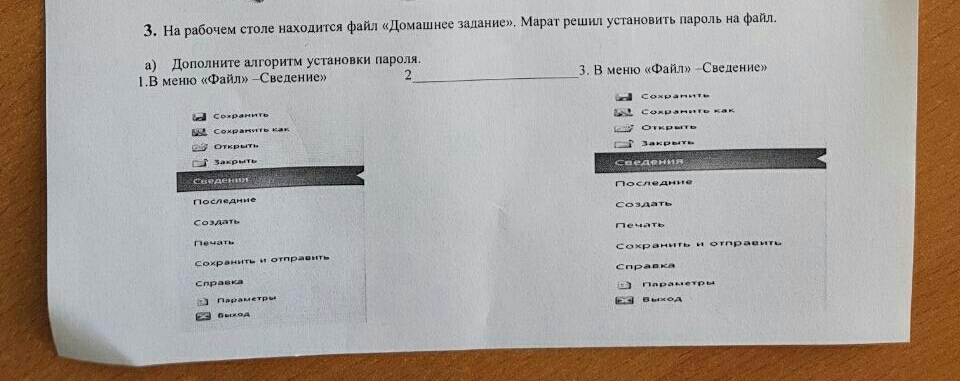 Наверно так Файл-Сведение-Создать-Пароль(Возможно будет так,я не уверен)