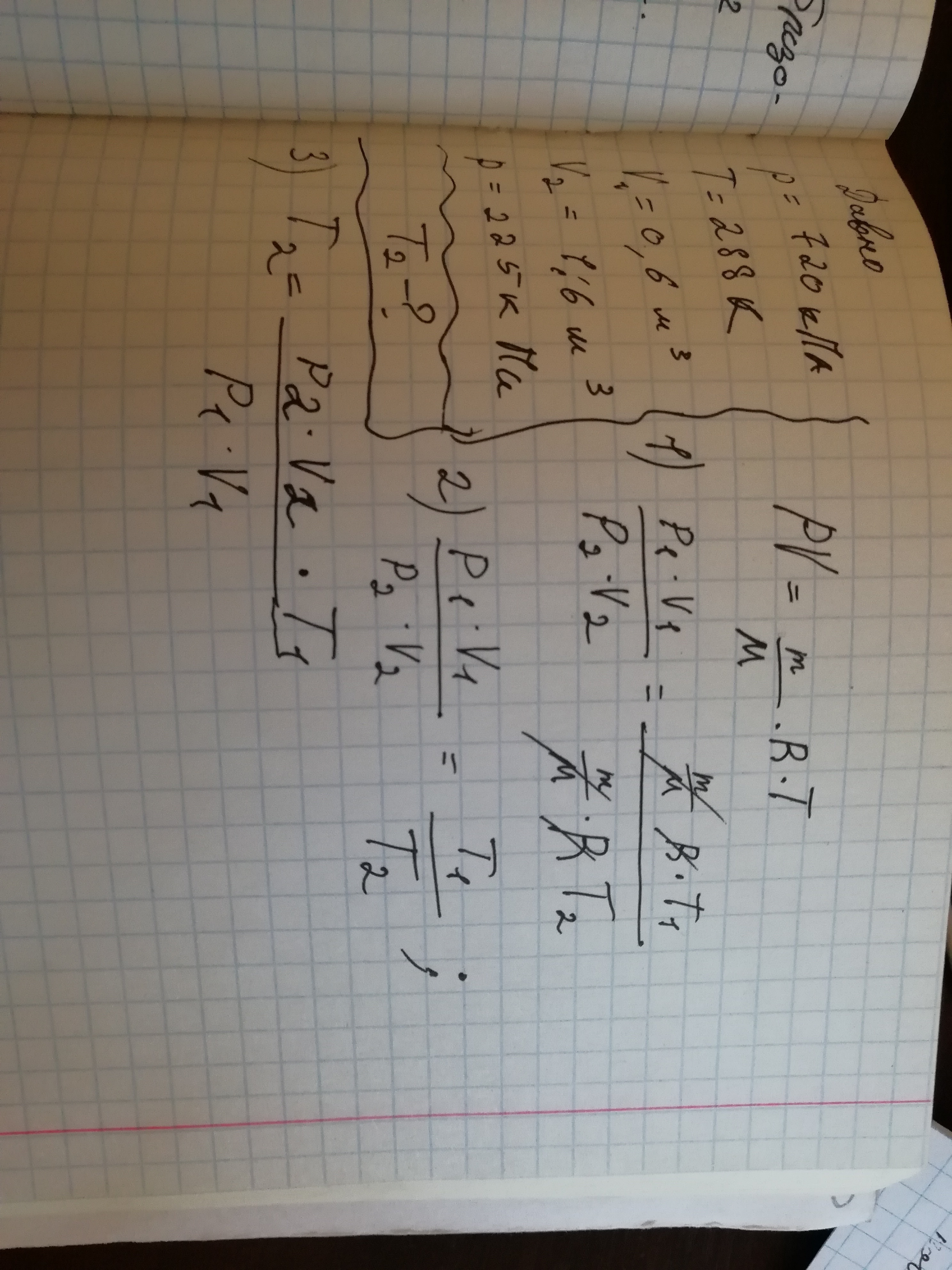 1)мы объеденяем 1-е значениями со вторыми т. е.как на фото. 2)Масса и постоянная R не пенянтся, поэтому мы сокращаем их. 3)теперь считаем. Так, нам нужно найти T2, путем алгебр.. преобр. находим его. 4)просто подставляем все значения в формулу и считаем.