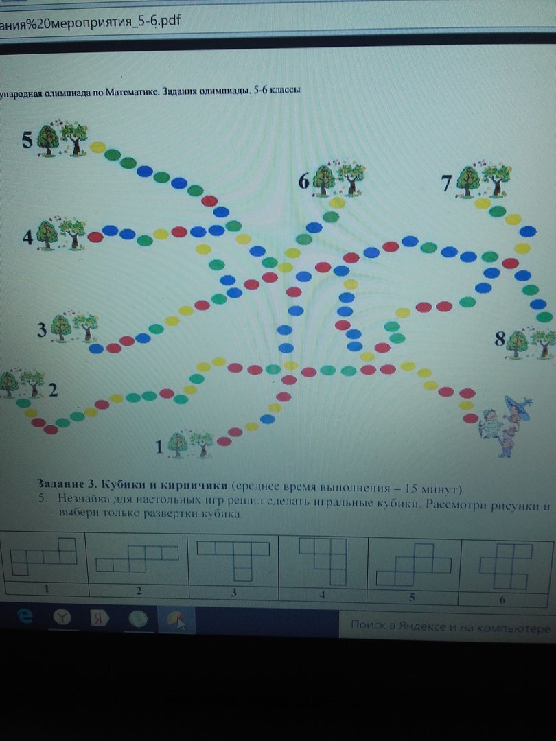 Незнайка, Пончик и Авоська отправились в сад собирать яблоки, груши и сливы. Незнайка отправился в сад, в котором растут яблоки. Чтобы Незнайке до него дойти, нужно искать на дороге красные и жѐлтые камушки. Кроме того, на дороге есть камушки ещѐ одного цвета, но какого – Незнайка не знает. Зато он точно знает, что общее число камушек всех трѐх цветов – 33. Пончик пошѐл собирать груши. Чтобы Пончику дойти до грушевого сада, ему нужно выбрать дорогу с количеством камушек больше 30, но меньше 32. Кроме того, на этой дороге камушки только красного, синего и жѐлтого цвета. А Авоська пошѐл собирать сливы. Авоська для своего пути должен выбрать дорогу с камушками всех четырѐх цветов: красные, жѐлтые, синие, зелѐные. Камушков каждого цвета на дороге, по которой пойдѐт Авоська, должно быть по восемь. Запиши в Бланк ответов номера садов, в которых растут яблоки, груши и сливы. Начерти на картинке дороги в каждый сад и вставь эту картинку в Бланк ответов. (У тебя должно получиться 3 дороги.)