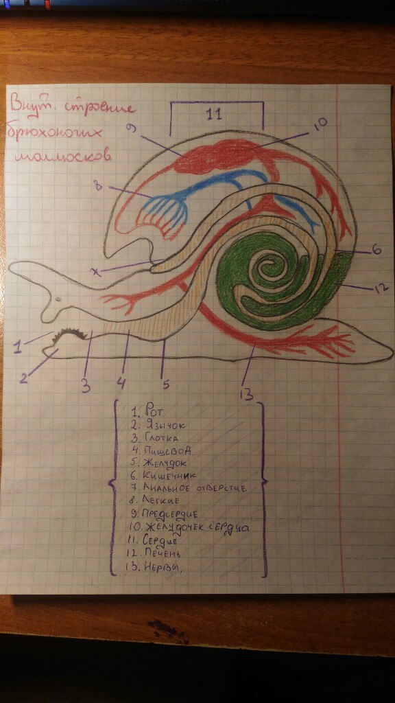 Во вложении внутреннее строение брюхоногих моллюсков.