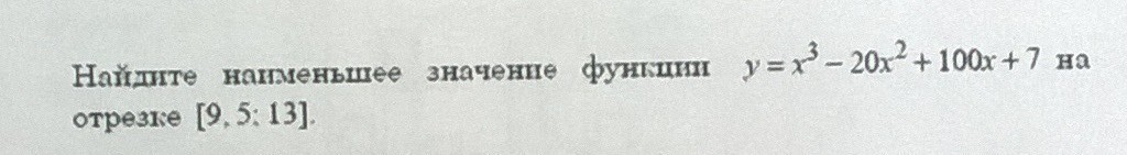 x = 10 ∈ [9,5; 13] , следовательно в этой точке минимум функции, и минимум на указанном интервале.