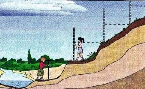 Для начала устанавливаем нивелир в самой нижней точке оврага вертикально по отвесу.Горизонтальная планка должна быть направлена к склону оврага.Отмечаем колышком точку на склоне,на которую направлена горизонтальная планка.Это и будет высота в 1 метр.Далее нивелир перемещаем к колышку и делаем следующий замер.Вторая точка будет выше на 2 метра от самой нижней точки оврага.Таким методом мы измеряем весь овраг.