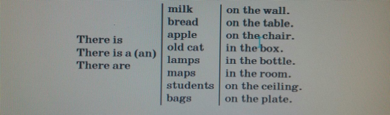 There is a milk on the table/ in the box/ in the bottle/ in the room.