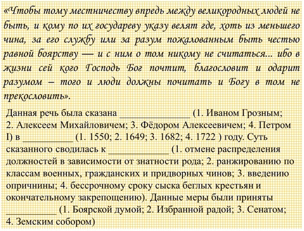 Прочти документ. Вставь ниже в каждый пропуск правильный вариант из предложенных. Чему равна сумма четырёх цифр, под которыми обозначены правильные варианты? Ответ запиши числом, без кавычек и каких-либо знаков препинания. Например: 6