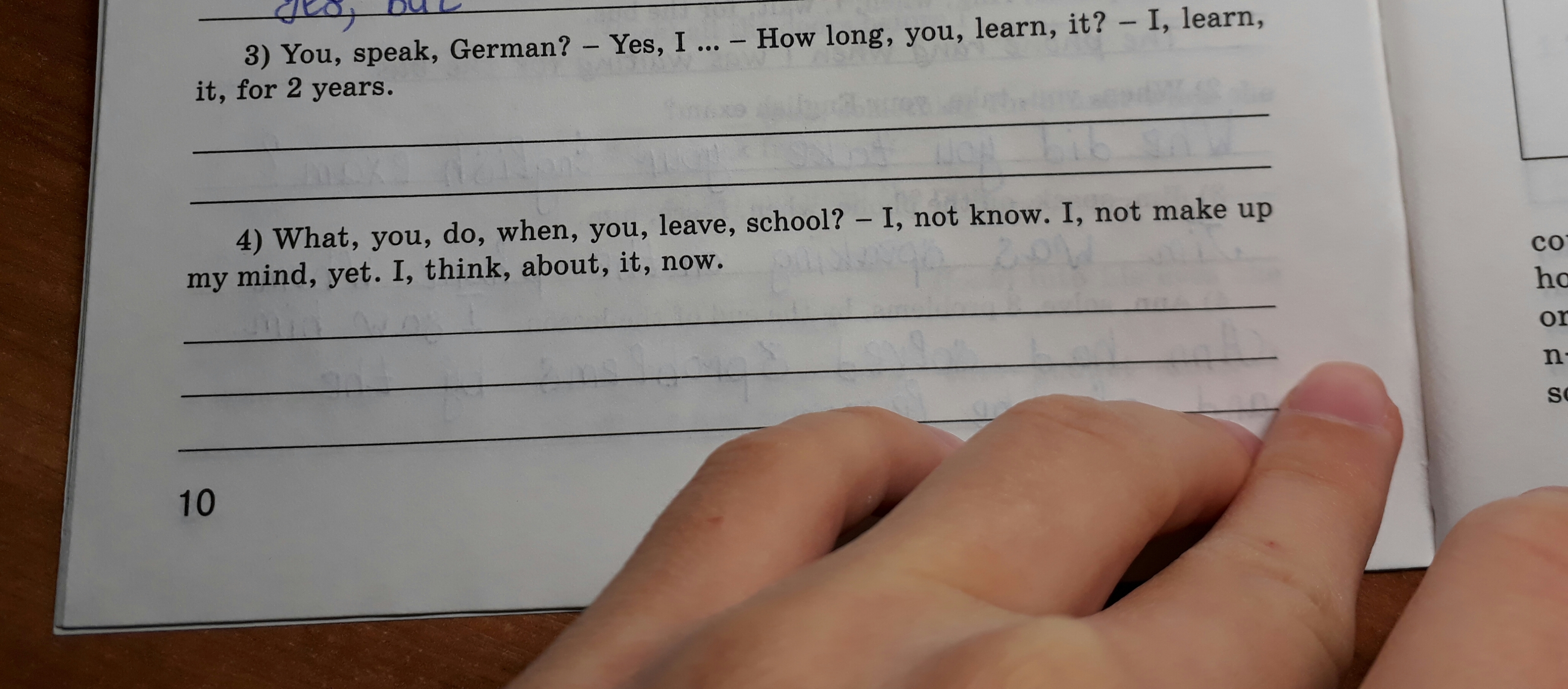 3) Do you speak German? -Yes, I do- How long do you learn it?- I learn it for 2 years