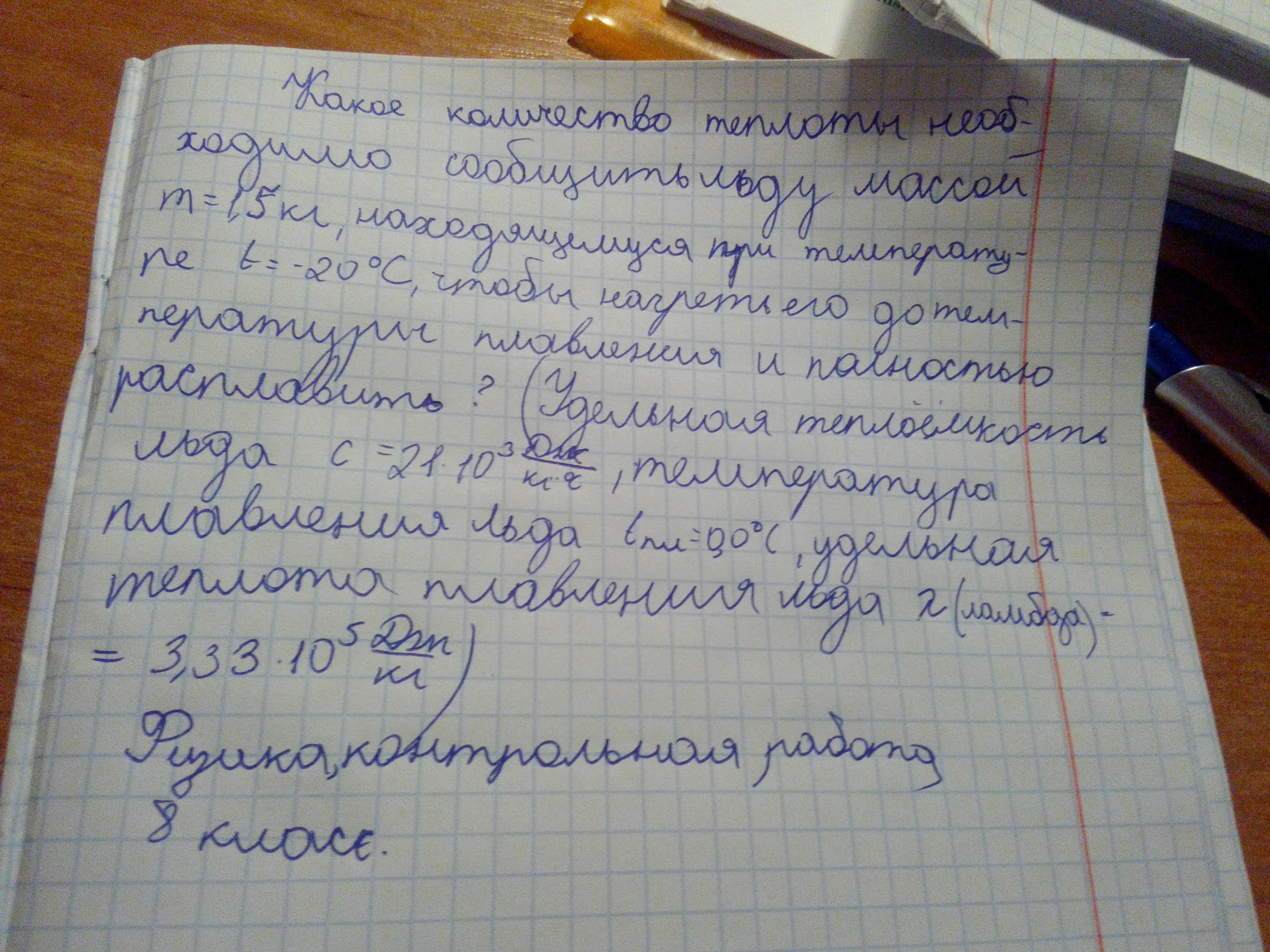 какое количество теплоты ееобходимо сообщить льду массой 1,5 кг, находящемуся при температуре -20 градусов, чтобы нагреть его до температуры плавления и полностью расплавить?( Удельная теплоёмкость льда равна 21000 Дж/кг *С, температура плавления льда равна 0 градусов, удельная теплота плавления льда равна 333000дж/кг.