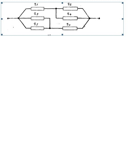 Шесть сопротивлений соединены, как показано на рис2.4. Сопротивление R1 = 24 ом, r2 = 36 ом, r3 = 12 ом, г4 = 4 ом, r5 = 60 ом, г6 = 4 ом. Определить величину общего сопротивления?