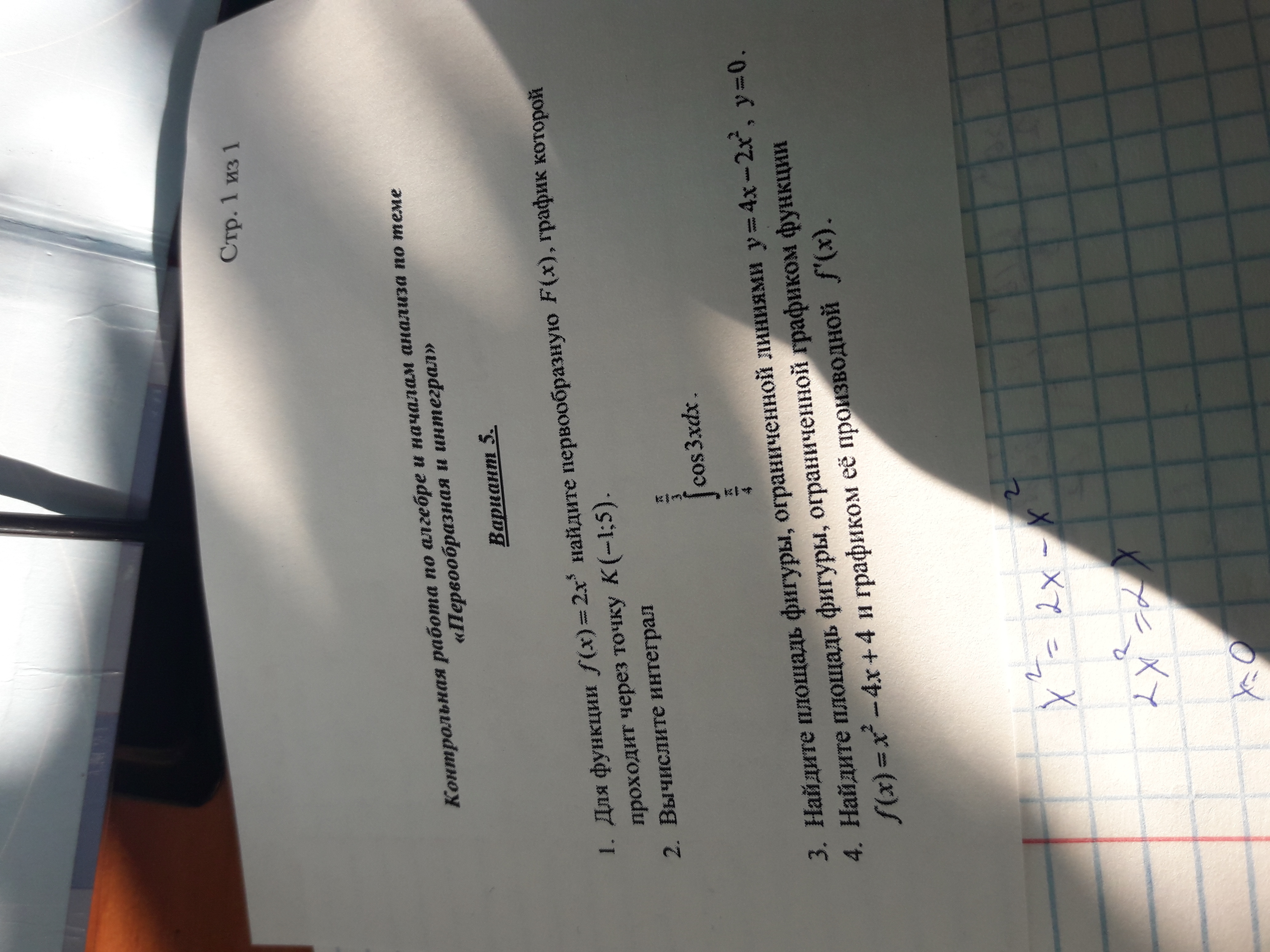 Чтобы график первообразный проходил через заданную точку К(-1; 5), надо в полученное выражение первообразной подставить координаты этой точки и найти константу С. Подставляем х = -1 и F(-1) = 5:
