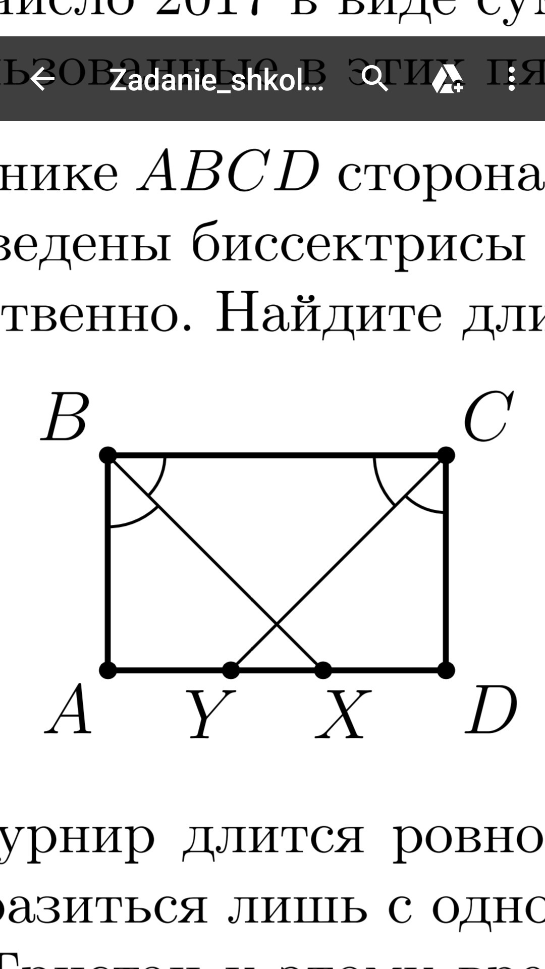 AD в точках X и Y соответственно. Найдите длину отрезка XY .