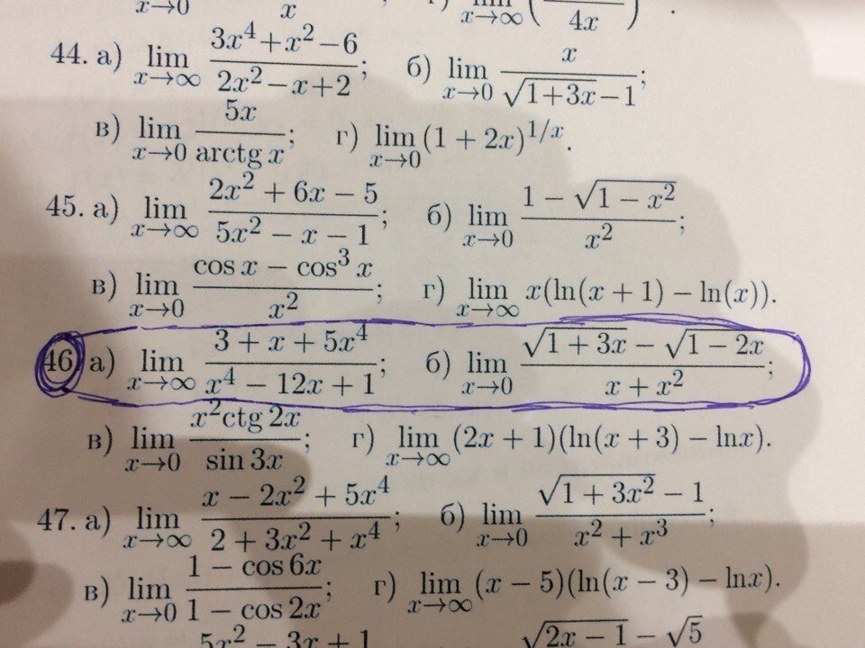 46a) Неопределённость ∞/∞ раскрываем делением числителя и знаменателя на икс в максимальной степени, т.е. на
