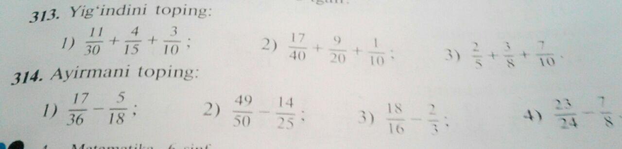 3) frac{2}{5} + frac{3}{8} + frac{7}{10} = frac{16+15+28}{40} = 1frac{19}{40}
