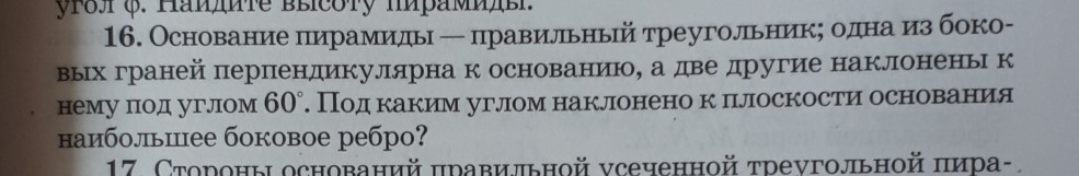 SB и SC наклонены к АВС под ∠ в 60°, они ∈ грани SBC ⇒ и грань SBC наклонена к АВС под ∠60°