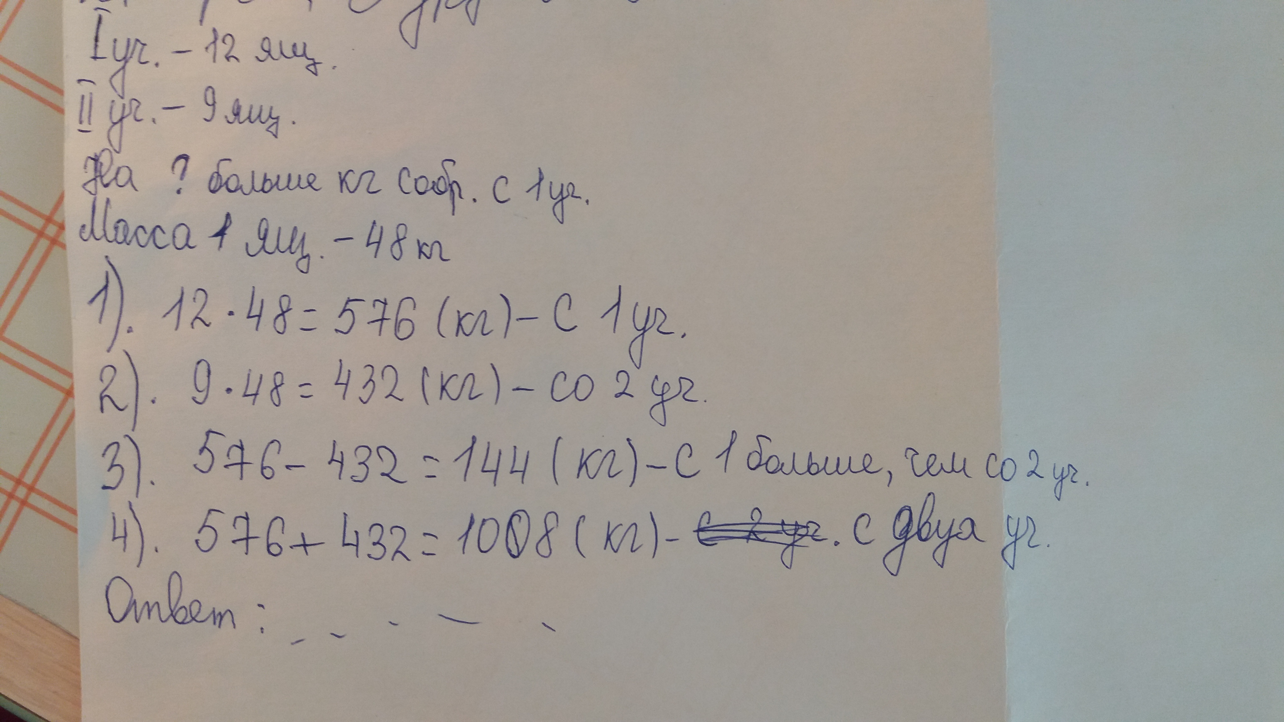 576+432=1008(кг)—разом з двох участків