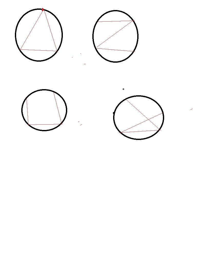 Построй ломаную, состоящую из трех звеньев, вершины которой отмечены на окружности. Рассмотри разные случаи.