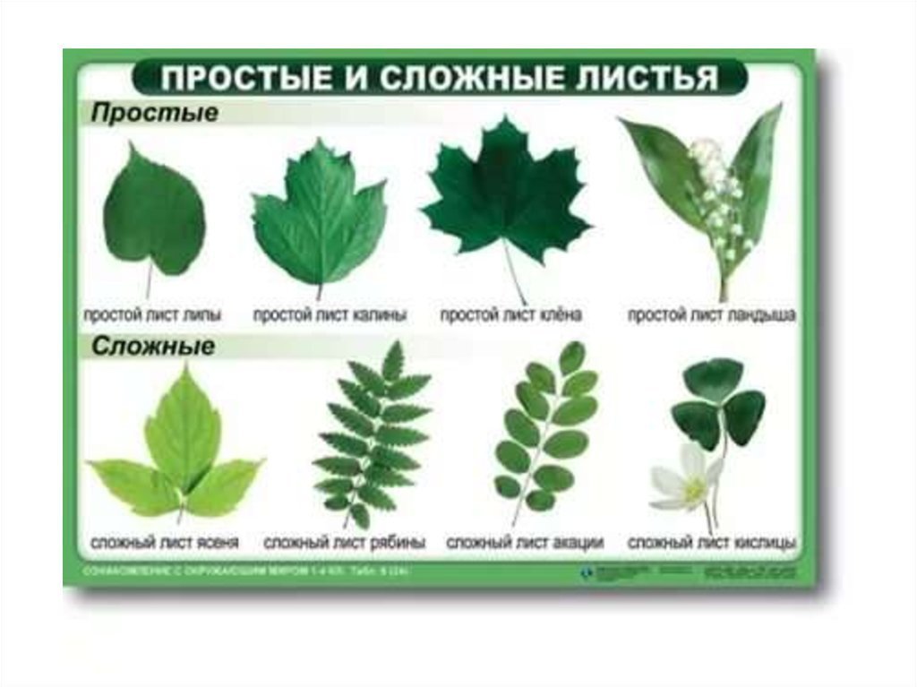 Простые листья имеют одну листовую пластинку (липа, дуб, береза)