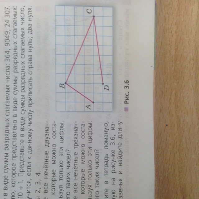 Перечертите в тетрадь ломаную изображенную на рисунке 3.6 измерьте её звенья найдите длину ломаный