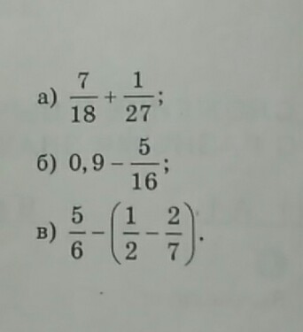 а) 7/18+1/27=14/54+2/54=16/54=8/27