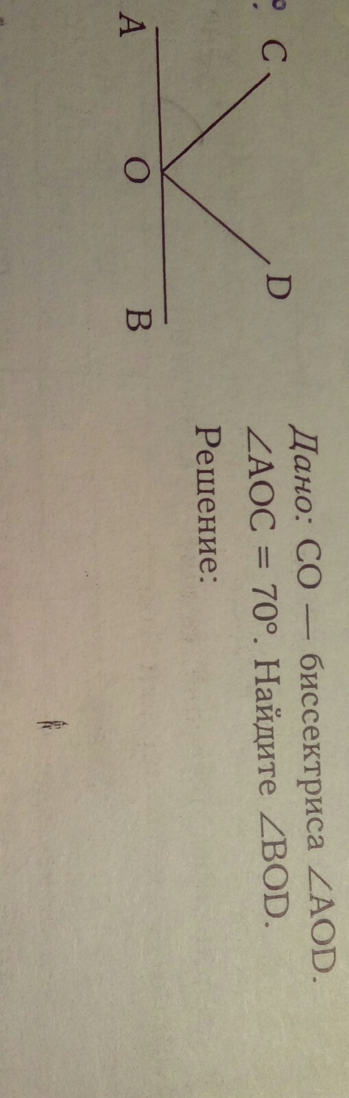 CO дулит угол на равные части,следовательно угол AOD = AOC+COD=70+70
