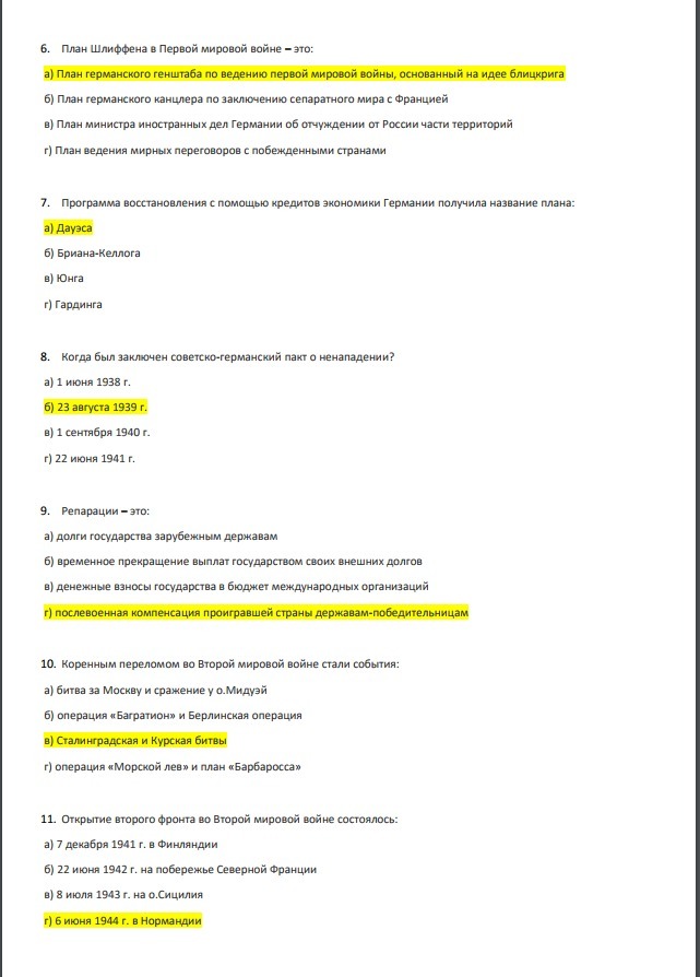7. Расположите в хронологической последовательности события Второй мировой войны.