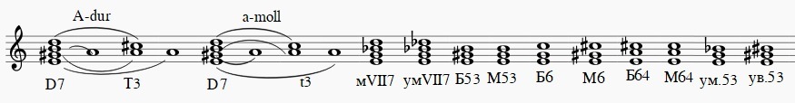 Добрый вечер, помогите пожалуйста. Нужно построить от ноты ми следующие аккорды : D7 с разрешением, вводные и трехзвучные. Буду признательна.
