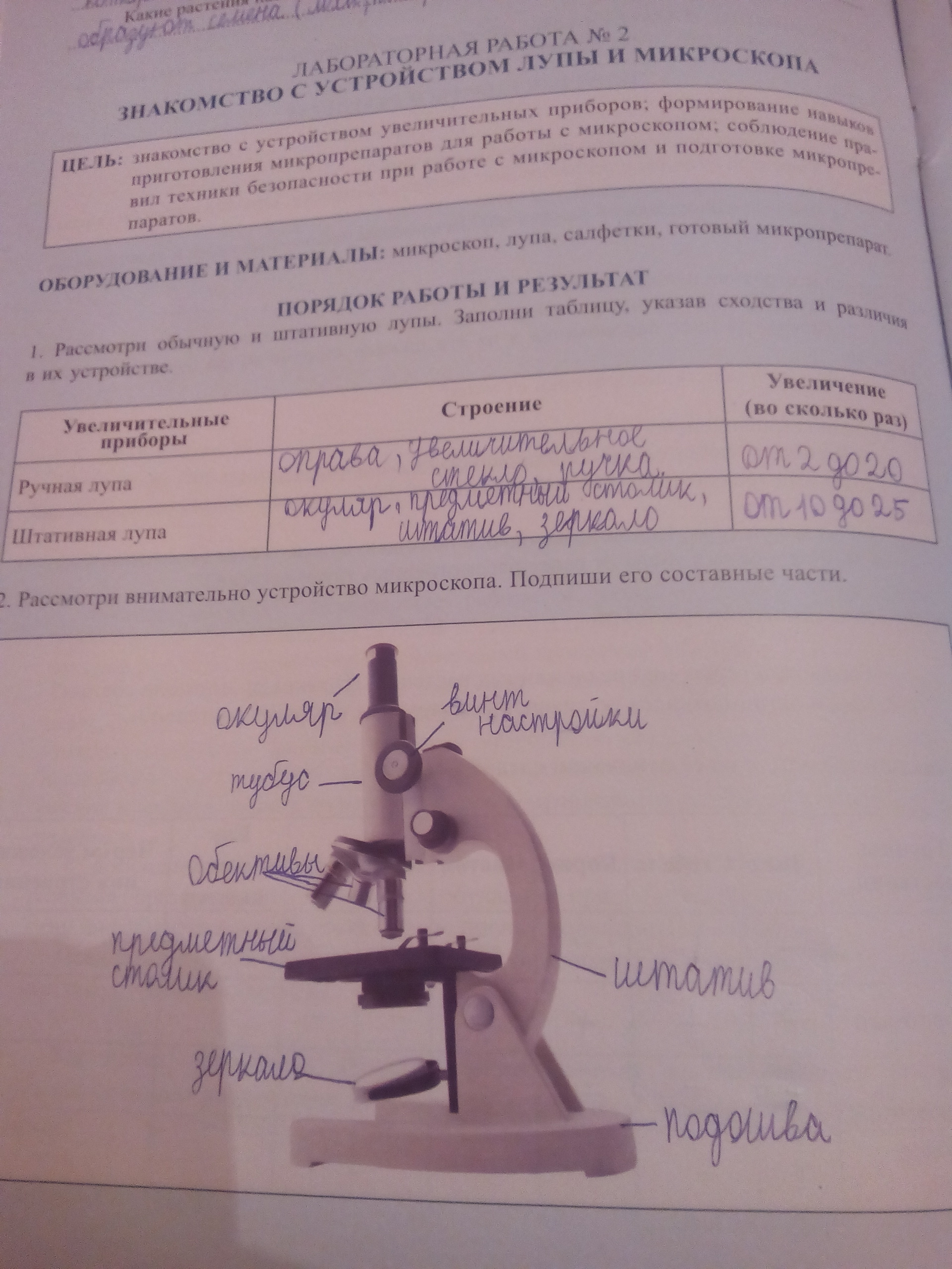 лабораторная работа (ознакомления с устройством микроскоп правила работы с ним) 6 класс