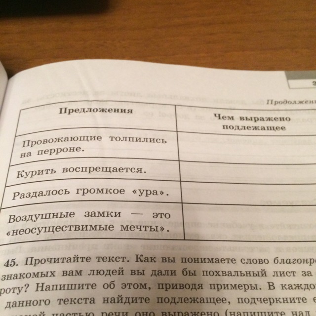 Найдите в каждом предложении подлежащее подчеркните его и запишите в правый столбик таблицы способ выражения