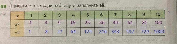 1³ = 1*1*1 = 1; 2³ = 2*2*2 = 8; 3³ = 3*3*3= 27; 4³ = 64; 5³ = 125; 6³ = 216; 7³ = 343; 8³ = 512; 9³ = 729; 10³ = 1000.